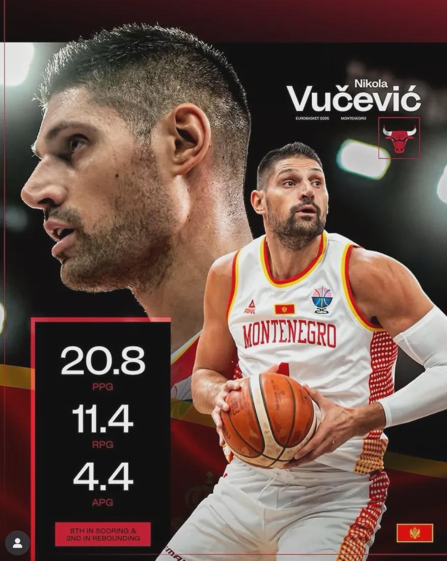 在2024-25赛季,武切维奇效力于公牛,场均贡献18.5分10.1篮板3.5助攻0.8抢断0.7封盖,三项命中率分别是53%、40.2%和80.5%,公牛同样看不到太好的前景,因此希望送走武切维奇,至少换来1个首轮签。